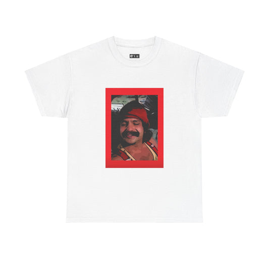 Cheech Marin unisex heavyweight tee shirt. Featuring a vintage portrait with his signature mustache and smile, it's a nod to his memorable character, Pedro DePacas. Perfect for fans of classic comedy.