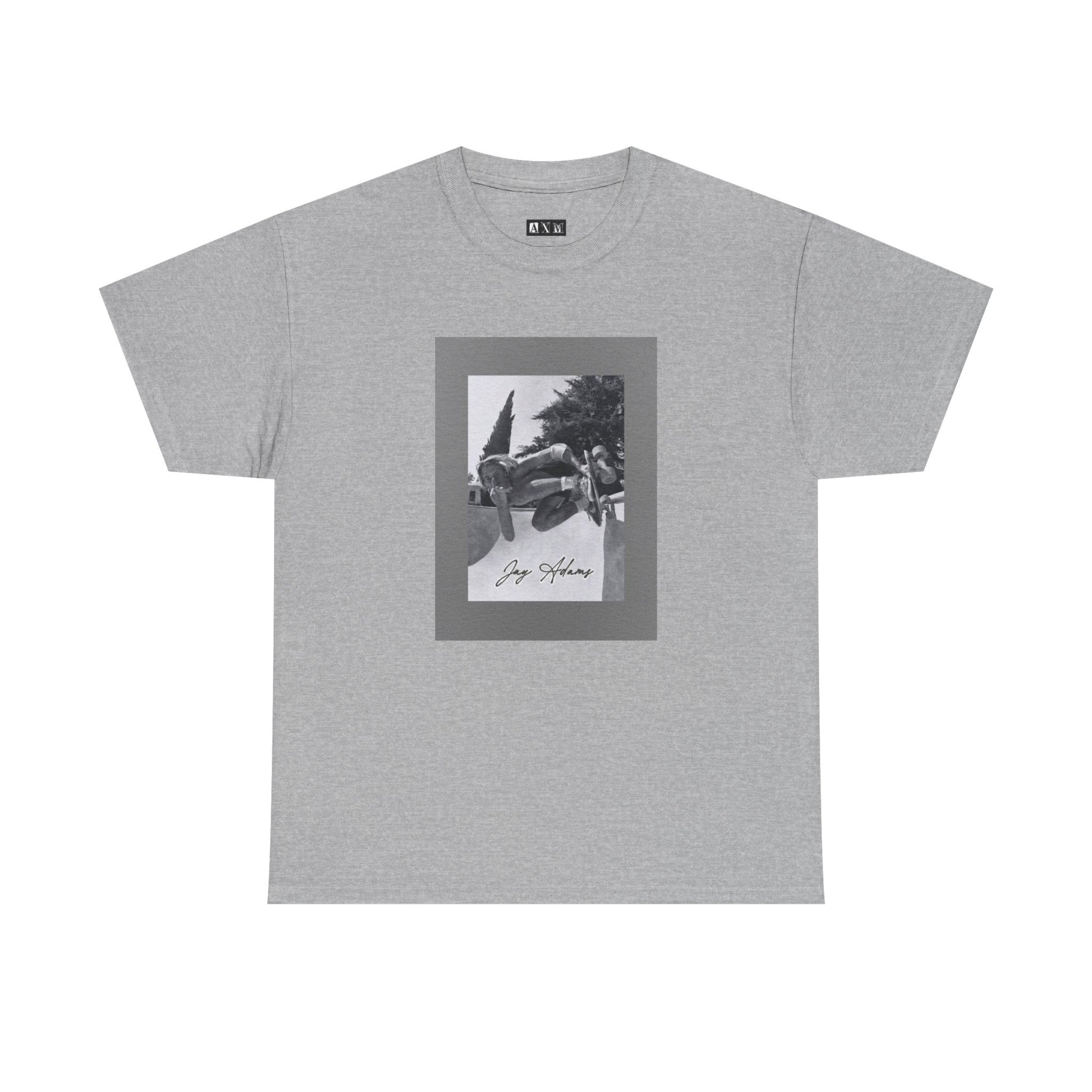 Jay Adams unisex heavyweight tee shirt. Wear a piece of skateboarding history featuring one of the Dogtown pioneers. Own a one of a kind tribute to one of the best skaters of our time.